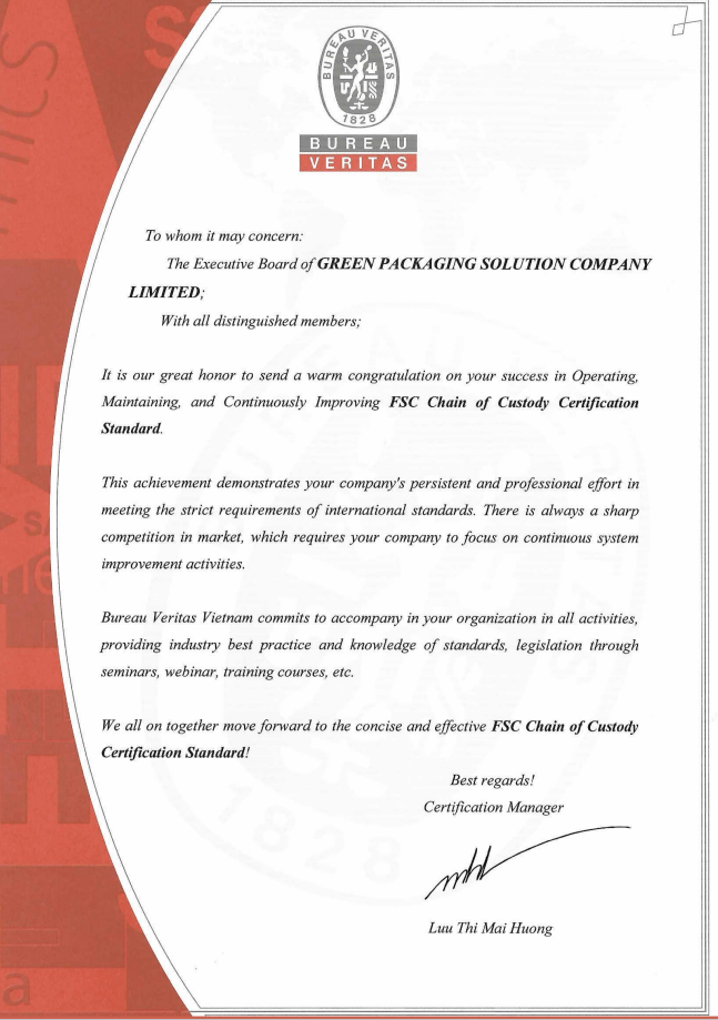 Thông điệp chúng tôi mang tới đó là kêu gọi mọi người dân trong nước và trên thế giới sử dụng các sản phẩm thân thiện với môi trường. Chúng tôi khuyến khích sử dụng các sản phẩm bao bì giấy để thế hệ tương lai được sống trong môi trường xanh, sạch. Chúng tôi hiểu rắng chúng tôi là một cái tên TỐT và chúng tôi cam kết luôn duy trì tiêu chuẩn cao nhất về chất lượng sản phẩm và dịch vụ vượt xa sự mong đợi của khách hàng.