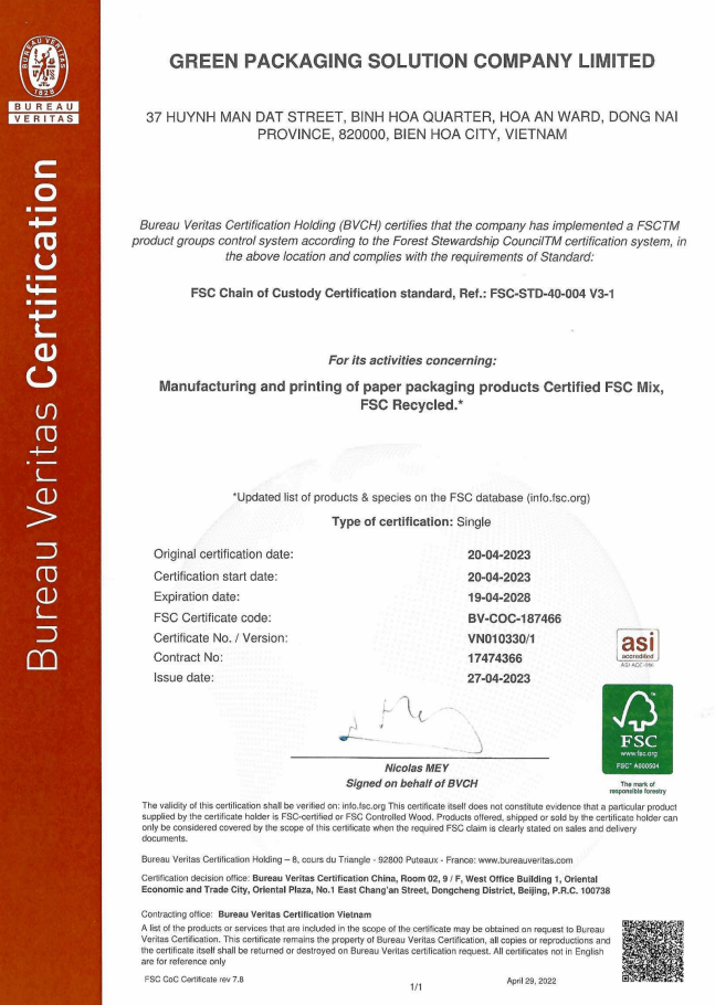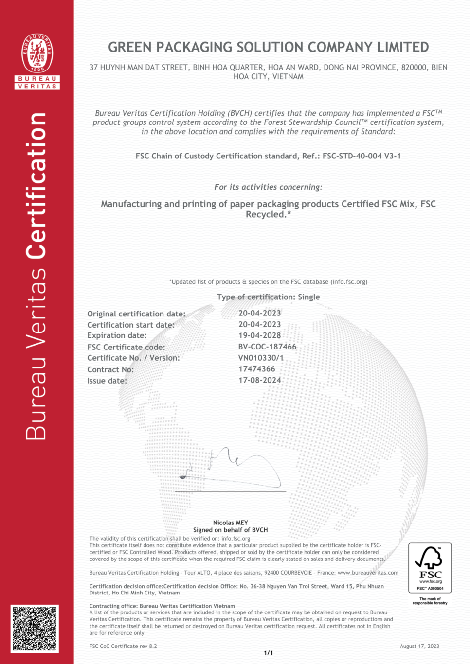 Tại Green Packaging Solution với hệ thống trang thiết bị, nhà xưởng hiện đại, đội ngũ kỹ thuật viên được đào tạo chuyên nghiệp, tất cả các yêu cầu của khác hàng sẽ được thoả mãn và phục vụ một cách tốt nhất. Sứ mệnh của chúng tôi là: Chuyên nghiệp – Nhanh chóng – Trách nhiệm – Sáng tạo – Tôn trọng.